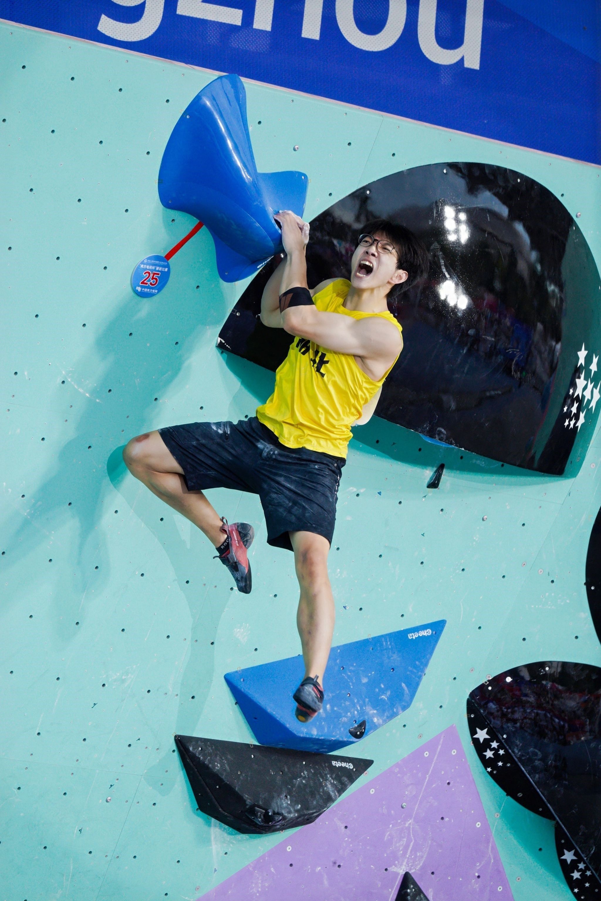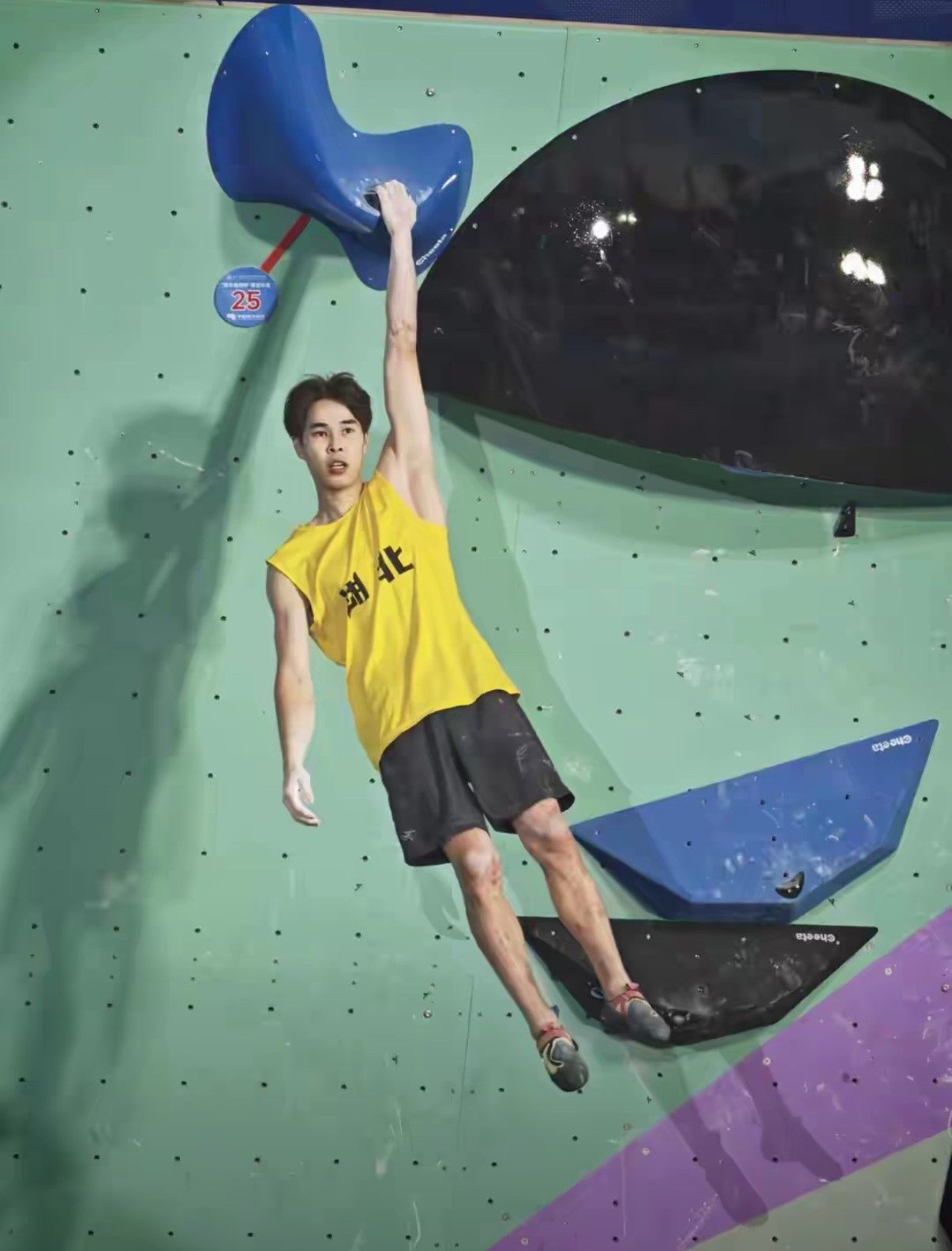 攀岩赛场上, 校友潘愚非则帮助湖北队强势夺得男子难度赛与攀石赛两块金牌。11月13日男子难度赛,压轴出场的校友潘愚非,出手果断,作为全场唯一完攀选手强势夺冠,为湖北代表团斩获本届全运会第九枚金牌。11月15日在男子攀石决赛中更是以99.9分近乎完美的发挥强势登顶!三日两金彰显绝对统治力。在男子攀石赛中,小视频 2025级本科生徐梓期取得第四名,小视频 2023级研究生黄迪翀在男子攀石赛中取得第八名。