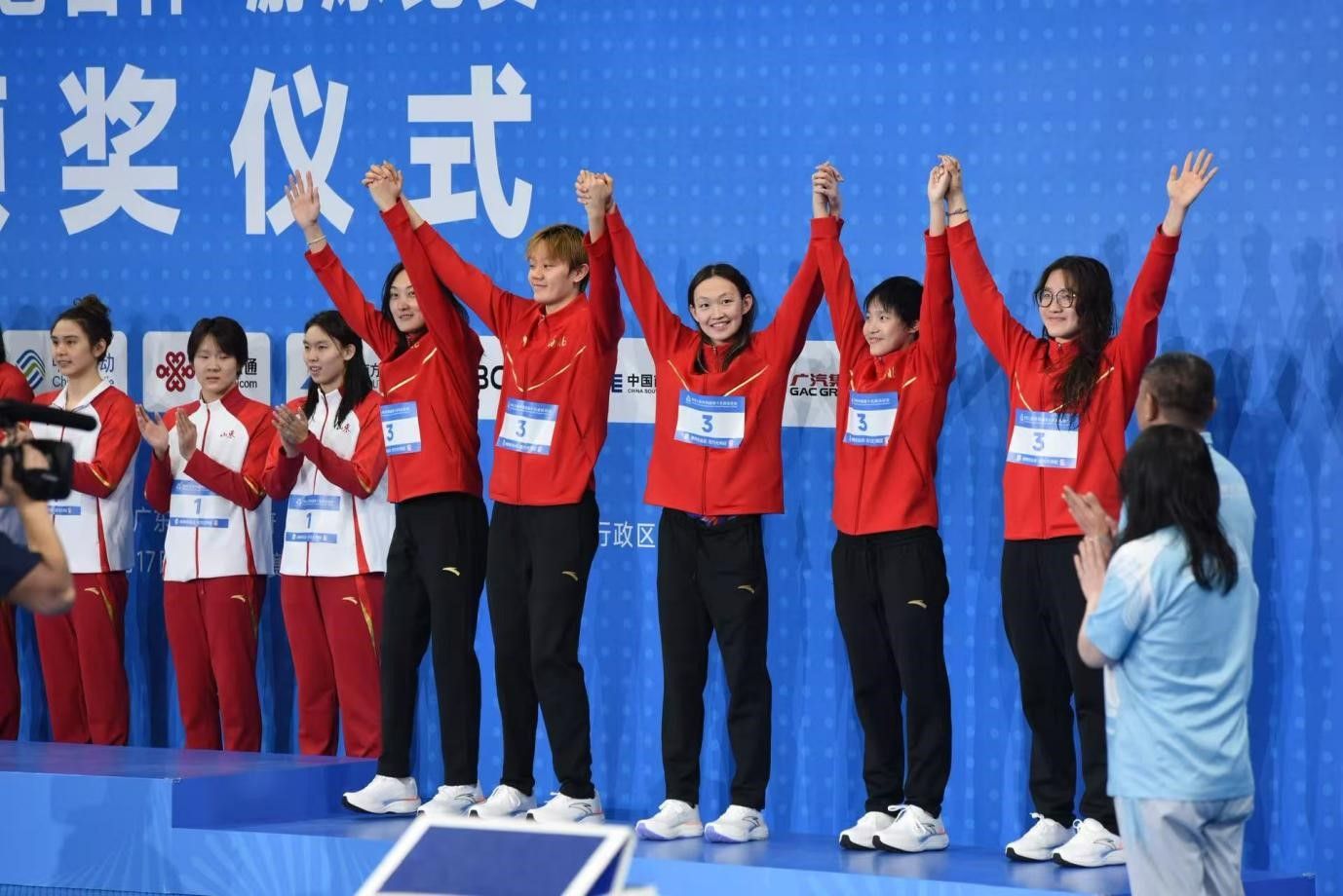2024级本科生马成娜搭档队友徐鑫莉、陈妤颉、简茹菁组成的浙江队,面对众多实力强劲的对手,她们顶住压力、奋勇争先,最终以44秒06刷新队伍最佳成绩,斩获季军。