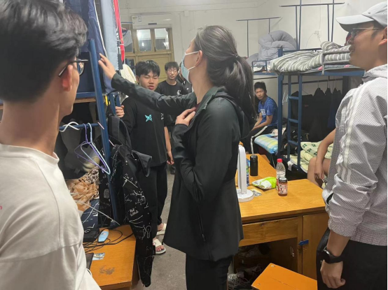 走访发现,学生宿舍总体情况较好,房间干净整洁地面无杂物堆积,物品摆放有序。学院党委书记朱军老师详细了解同学们近期学习和生活情况,并向同学们提出几点要求:一是严格落实学校疫情防控要求,校内学生坚持非必要不外出,不得参加聚集性活动;二是提高安全意识,注意宿舍用电安全,发现问题第一时间向学院学工组老师报告;三是激励同学们做好学期规划,珍惜大学学习时间,不断提高个人综合素养。辅导员陈老师和班主任老师与同学们亲切交谈,了解和关心同学们思想、学习生活情况,鼓励大家参加体育锻炼,抓好专项技能,缓解疫情防控常态化紧张情绪和焦虑心理