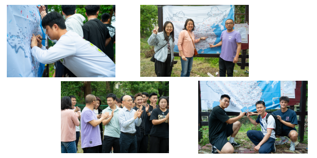 本次活动是营地教育课程的实践环节,同学们分成八个小组,每个小组负责不同环节的设计和组织工作。活动开始前,营前活动组在门口以列队的形式欢迎各位同学和老师的来到,并让到场师生在中国地图上各自省份签下自己姓名。